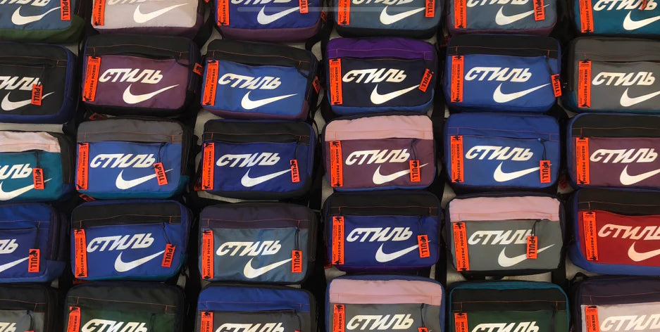 For Heron Preston’s Nike Vision eyewear collaboration, the concept of “reusable packaging” was introduced to house the sunglasses which came with 3 interchangeable lenses. Sunglass cases were placed and delivered in cross body bags developed and up-cycled from vintage Nike gym bags. This project was a part of the HP Re-Design program.